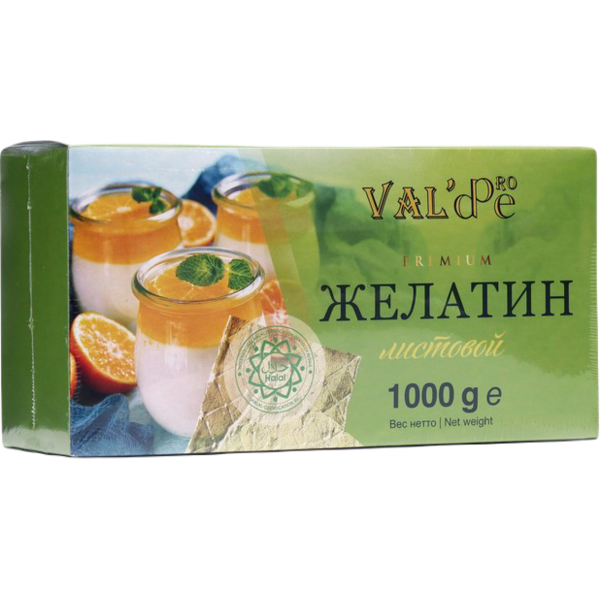 Листовой желатин применяется в производстве для получения студнеобразной структуры отделочных полуфабрикатов: кремов, муссов, суфле, желе, фруктовых начинок, гелей. Масса одной пластины листового желатина составляет около 5гр.