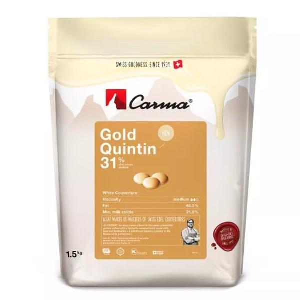 Белый шоколад Carma Gold Quintin с 31% какао, оптимален для отливки шоколадных фигур, конфет, приготовления начинок, десертов, ганашей, муссов, фонтанов и фондю.